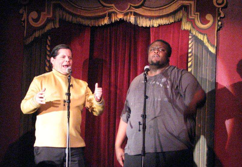 Pine River Valley residents Jonathan Hunt and Andre Pierre-Louis portray Captain James T. Kirk and a demoted Star Fleet cadet as this year's emcees. They're attending Star Fleet Remedial Academy in Durango.