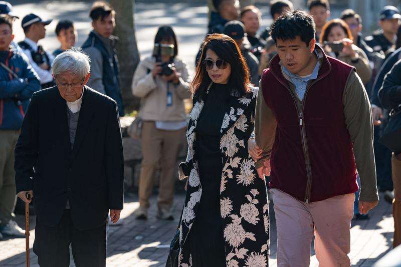 Among the attendees were Lai’s wife and son, and Hong Kong’s Roman Catholic Cardinal Joseph Zen. Lai nodded to his family before being escorted out of the courtroom.