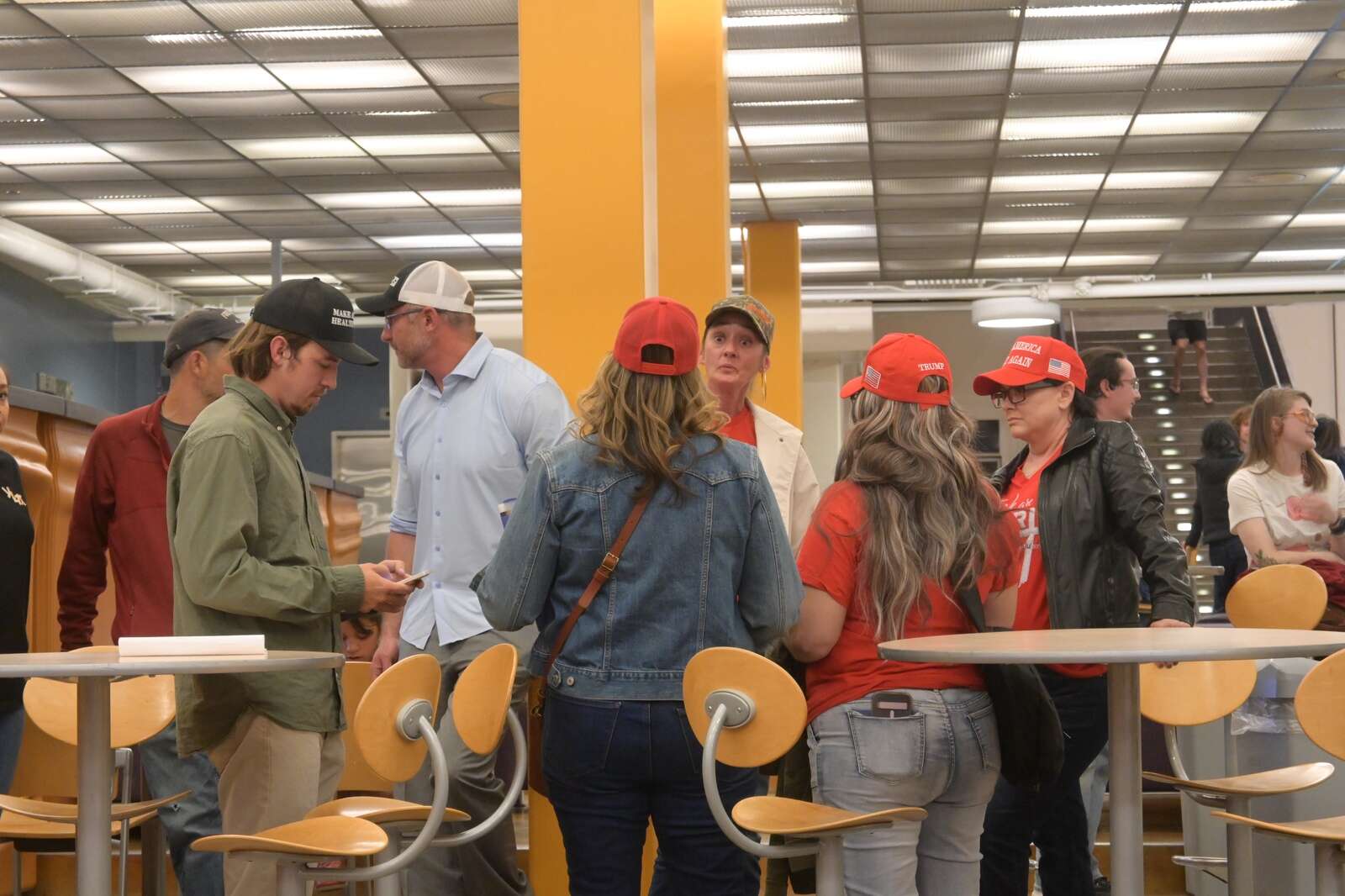Several “Make America Great Again” hats and “We are Charlie” shirts – referencing Turning Point’s founder – stood out in the crowd gathered in the Student Union lobby.