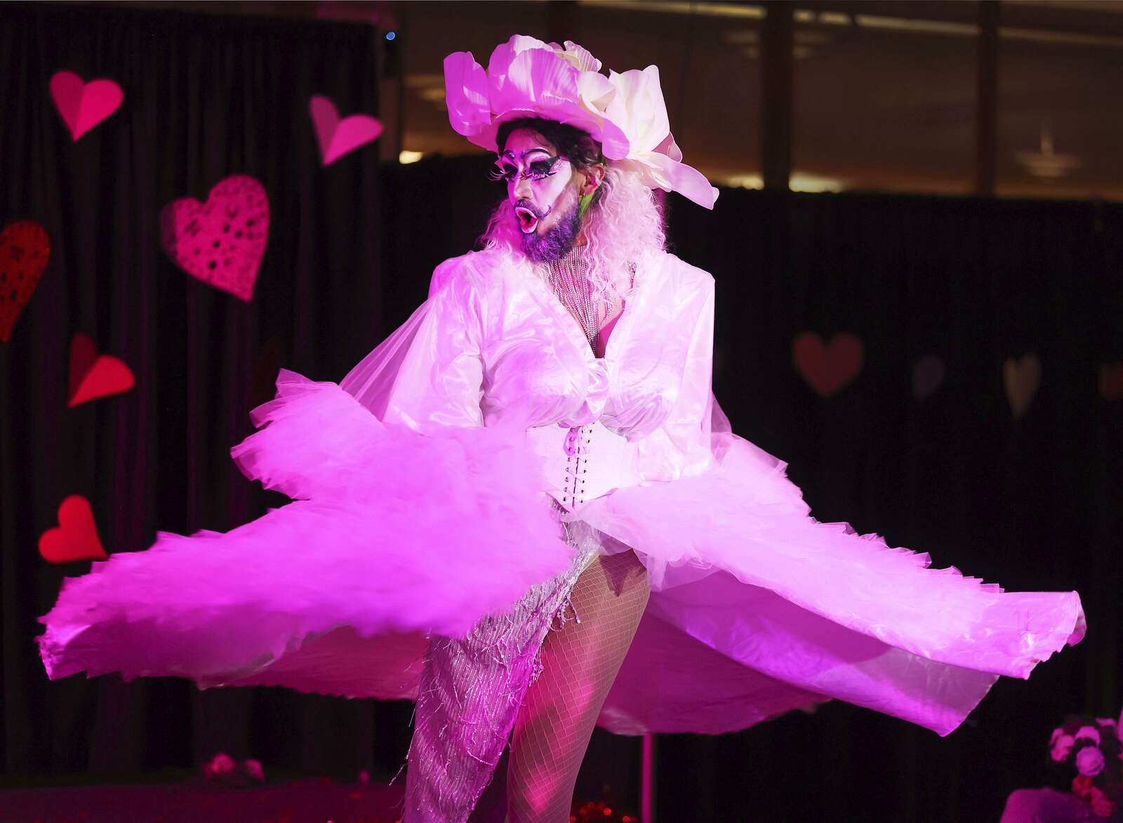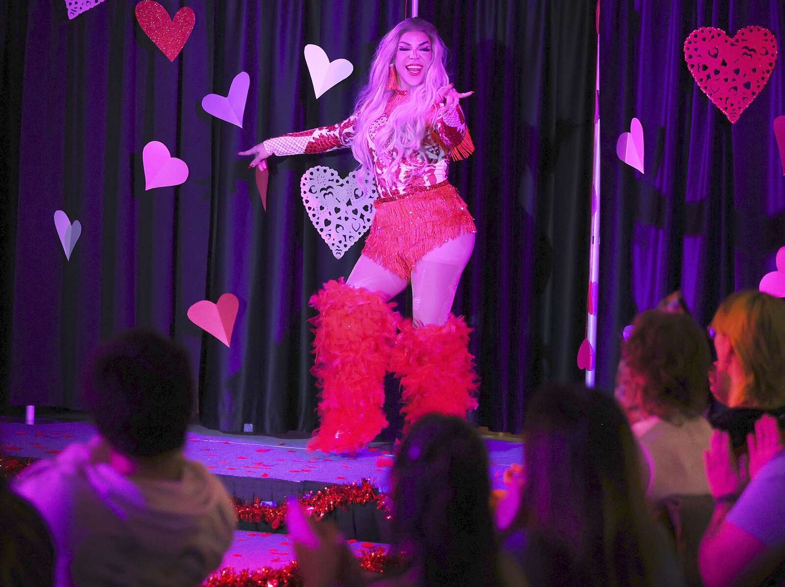While some drag shows can be political, this one was about cultivating a reprieve from a politically fraught world and celebrating love in all its forms this Valentine’s Day, Pettyone said.