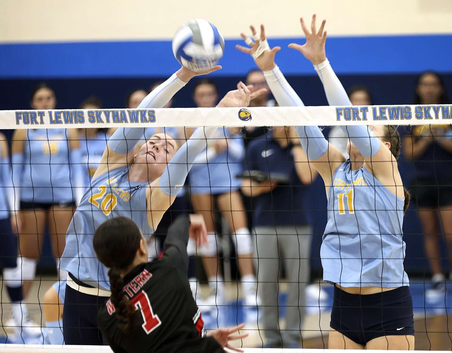 Western Colorado made an effort to come back with some nice tools and powerful kills around the net. However, the Skyhawks never lost their composure and closed the set out with a kill from Freymuth for the 25-18 set win.