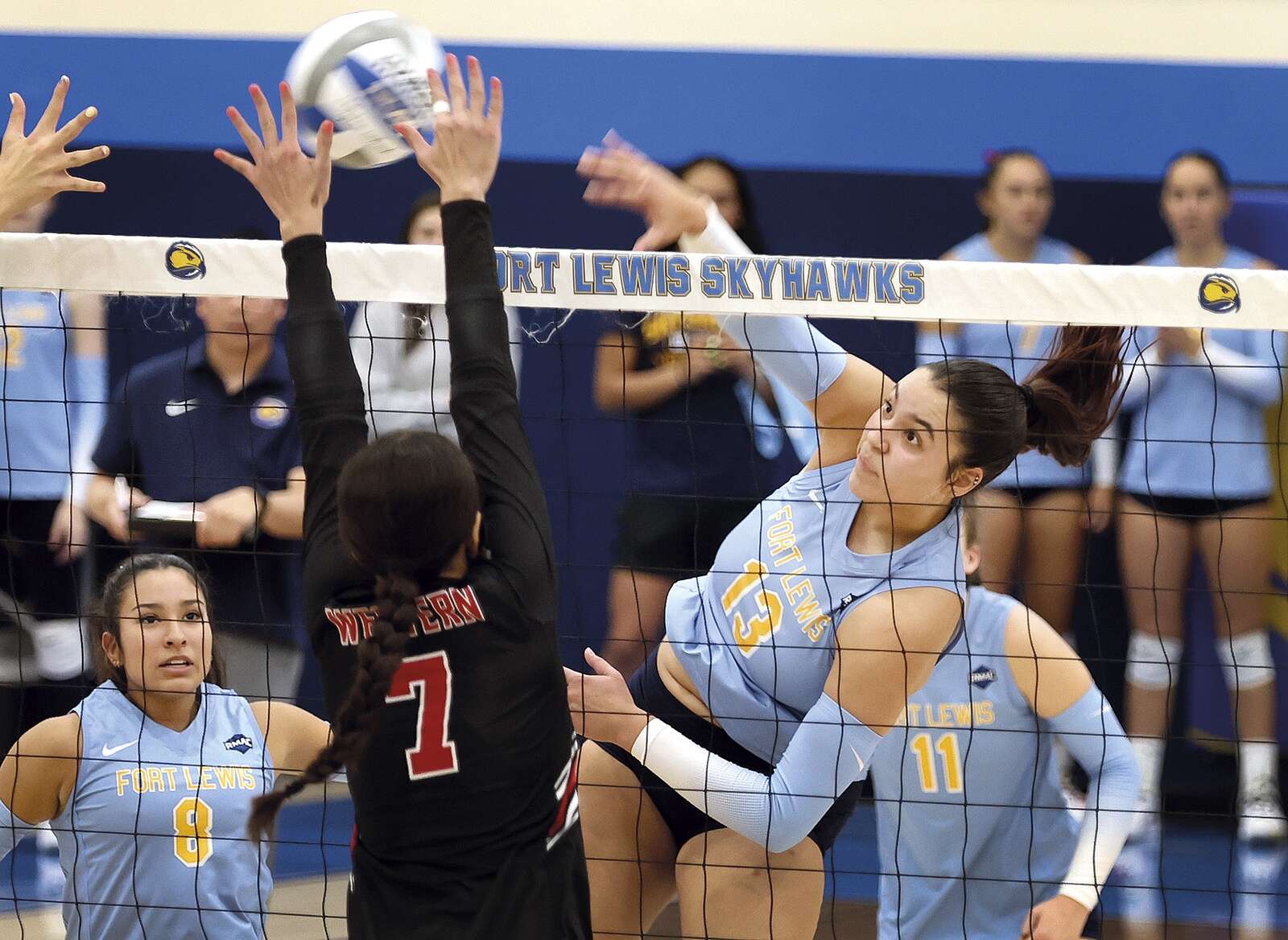 Set 3 wasn’t as dominant for FLC early on, as the Skyhawks and Mountaineers were tied 5-5; FLC’s errors from Set 1 looked like they were showing up again.
