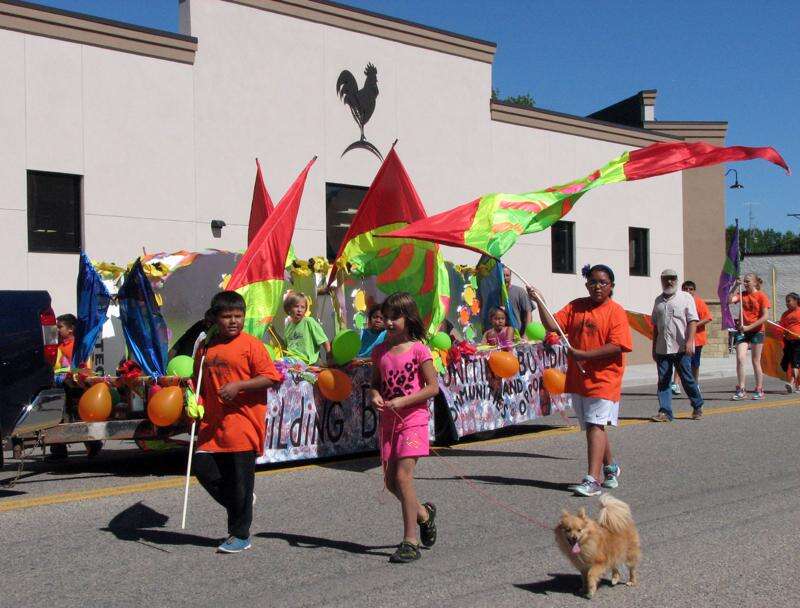 The La Plata County Independent Youth Performing Arts group displays some color with their flags during Saturday's parade for San Ignacio Fiesta. The group offers dance, drill team, yoga and other activities for youths in Ignacio and Bayfield. The float took first place in the 'children walking' category in the parade judging. For more Fiesta photos and results, see Page 5.