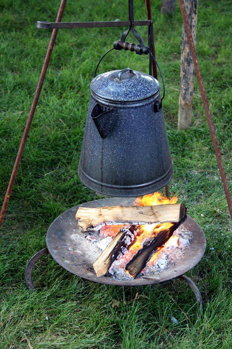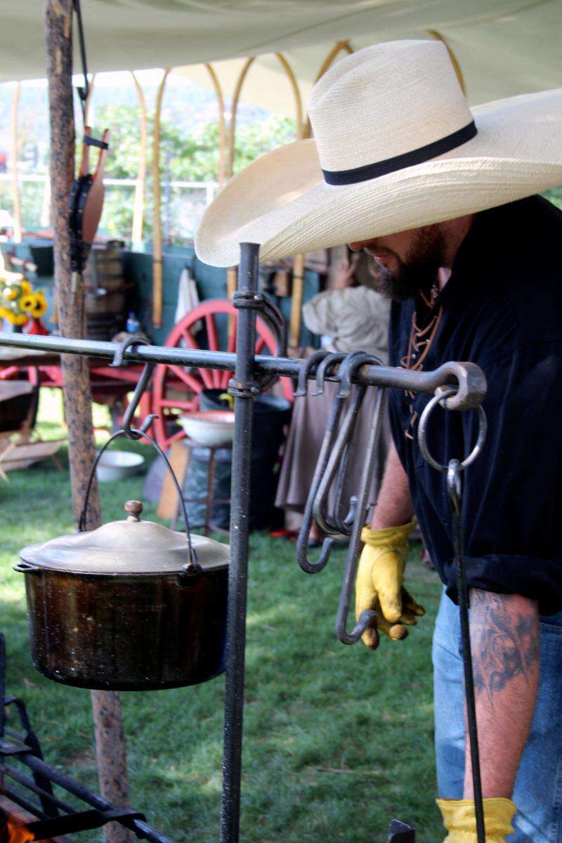Before the judging begins on Saturday night, I like to visit the campsites and take photos. Chuckwagon cooking is an all-day affair and lots of hard work. I'm always impressed with the wagon crew members' prowess at moving big iron pots and Dutch ovens over the campfires and coals, somehow managing to rarely burn anything they're cooking while working in stifling heat and wearing period clothes.