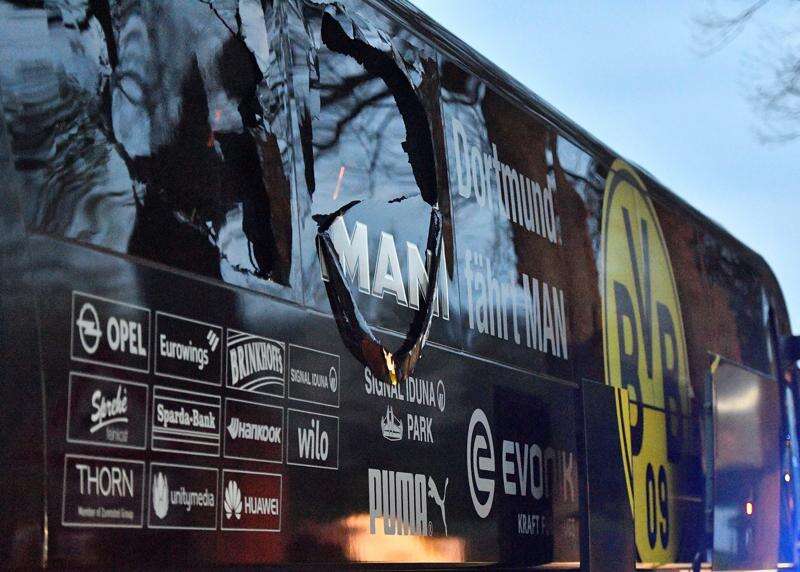 A window on the bus was damaged and Spanish defender Marc Bartra was injured. Club spokesman Sascha Fligge said Bartra was operated on late Tuesday for a broken bone in his right wrist and to remove “foreign objects” from his arm.