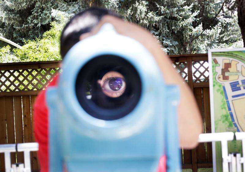Marcos Candelaria, 15, of Farmington, looks through a spotting scope Monday in front of the Colorado Parks and Wildlife Durango Fish Hatchery & Wildlife Museum, 151 E 16th St. The museum’s summer hours are 10 a.m. to 4 p.m. Monday through Friday, 10 a.m. to 4:30 p.m. Saturday and 11 a.m. to 3 p.m. Sunday.