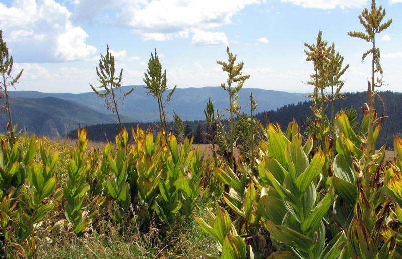 While summer wildflowers are waning, there are still some dramatic specimens to see in the high country before the autumn colors arrive. These skunk cabbage are growing well over five feet high at the top of Middle Mountain Road.