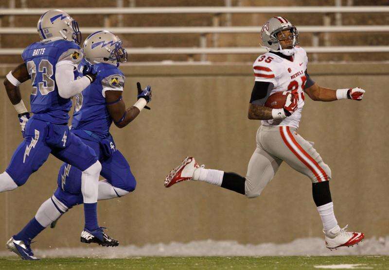 It was all UNLV early on. Trent Langham blocked David Baska’s punt attempt after Air Force’s opening drive stalled 2:29 into the game, and the Rebels’ David Greene returned the ball to the Falcons’ 30-yard line.