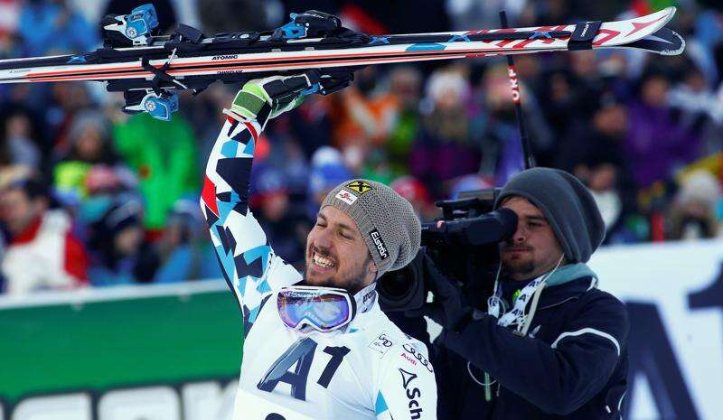 KITZBUEHEL, Austria — Only five-time overall champion Marcel Hirscher prevented Dave Ryding from becoming the first British skier to win a World Cup race on Sunday.
