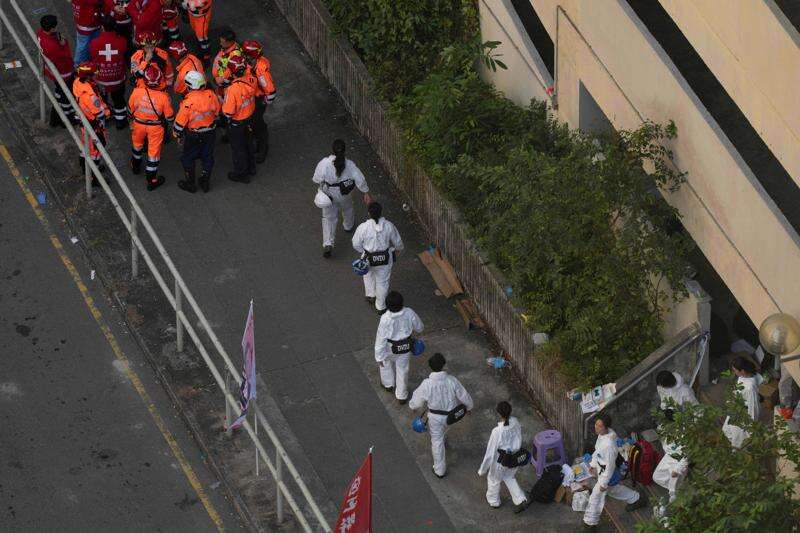 HONG KONG (AP) — Hong Kong firefighters found dozens more bodies Friday in an intensive apartment-by-apartment search of a high-rise complex where a massive fire engulfed seven buildings. The death toll in one of the city's deadliest blazes rose to 128, and many remain unaccounted for.