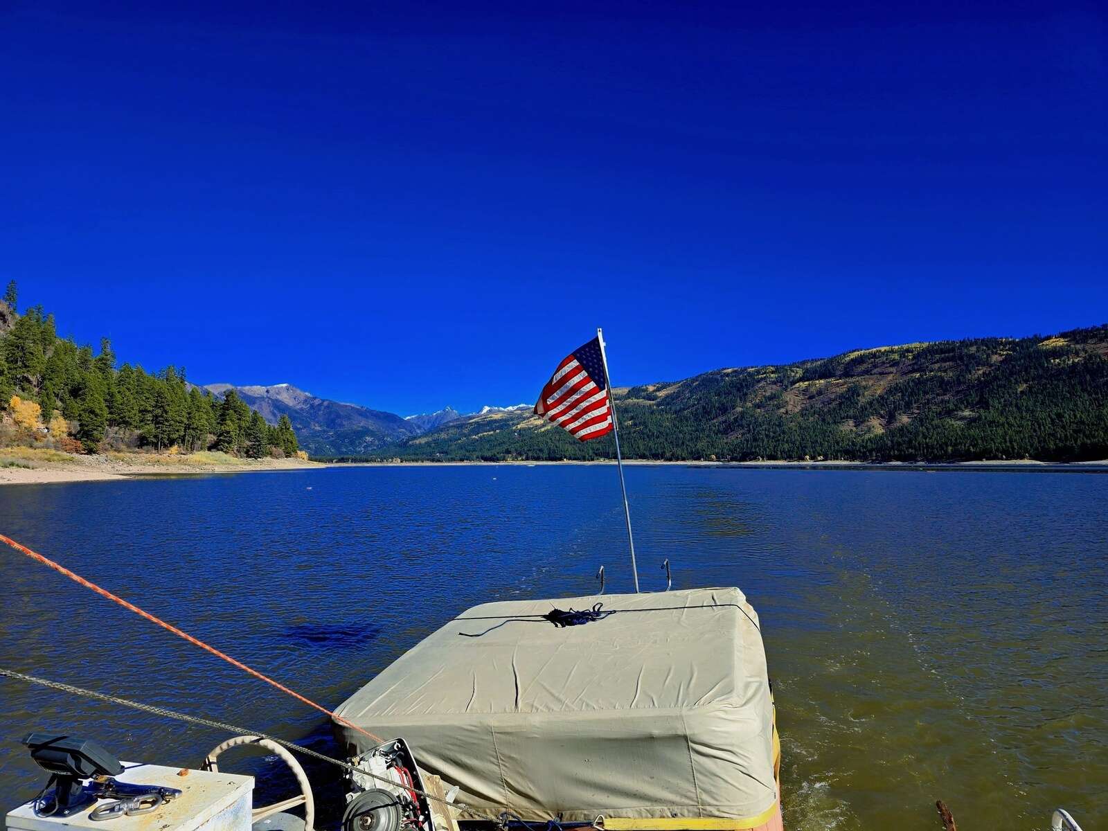 The “S.S. Tubbie” that was filmed floating down a flooding Vallecito Creek on during the Oct. 11 floods is seen in Vallecito Reservoir at the north end of the lake. (Jerry McBride/Durango Herald file)