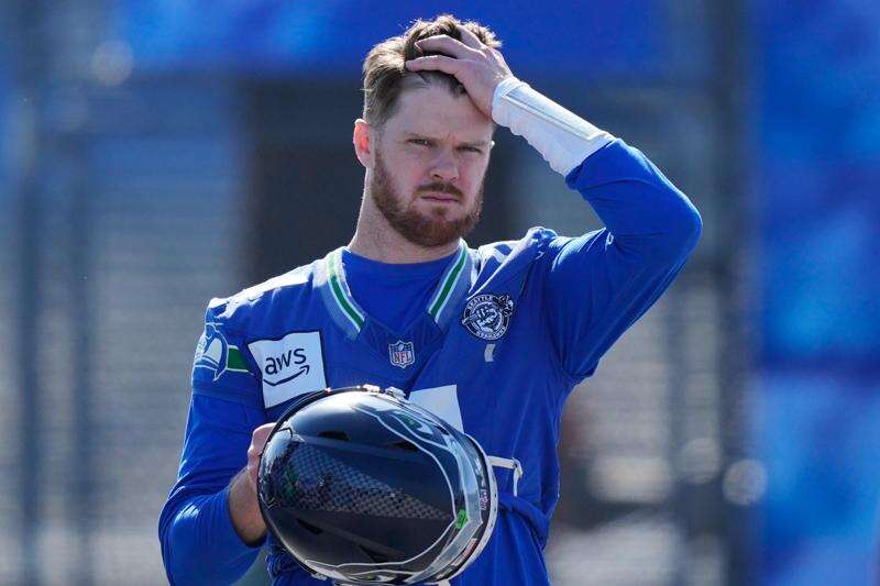Seattle Seahawks quarterback Sam Darnold (14) arrives during an NFL Super Bowl football practice on Friday, Feb. 6, 2026, in San Jose, Calif., ahead of Super Bowl 60 between the New England Patriots and the Seattle Seahawks. (AP Photo/Brynn Anderson)