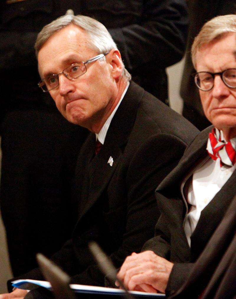 But Ohio State’s president – who said Tuesday he would retire effective July 1 – was undone by his own remarks, including that especially infamous line. When asked in March 2011 whether the school had considered firing embattled coach Jim Tressel, a grinning Gee said: “No. Are you kidding? Let me just be very clear. I’m just hopeful the coach doesn’t dismiss me.”