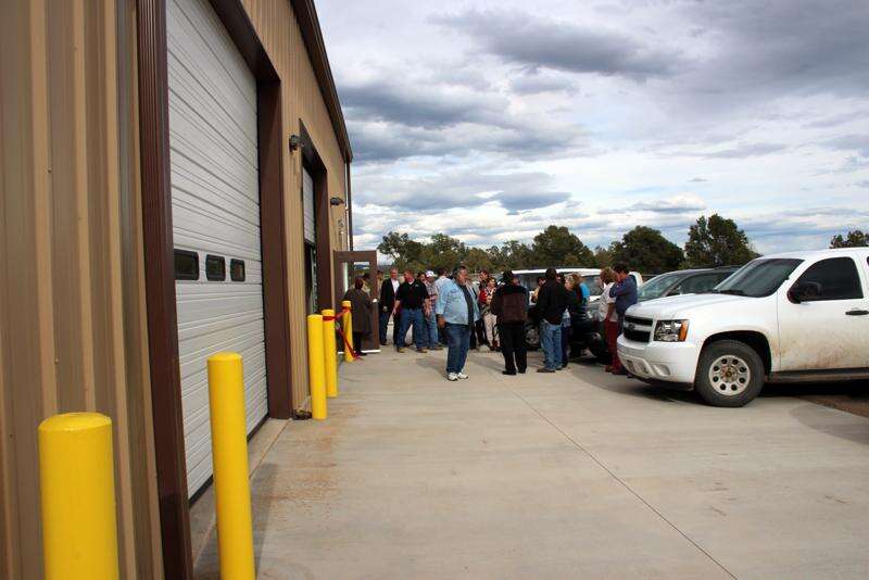 District employees and board members cut a red ribbon Thursday, April 14, to officially open the district's new transportation building on CR 319. The district's new middle school and remodeled elementary and high schools already are complete. There is a new administration building.