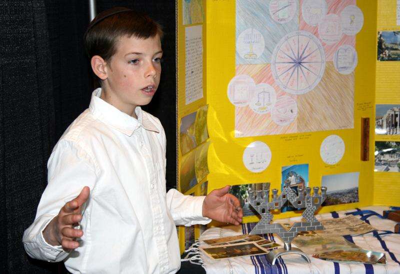 Logan and his dad, Jason, explained Jewish and Hebrew holidays, such as Hannakuh and Passover, below left
