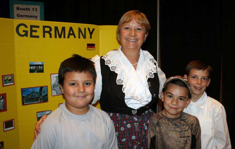 Above, third grade teacher Vickie Sutton shared her German culture with students Arnesto Dominguez, Zane Olguin and Gerrit Logan.