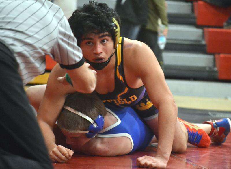Bayfield's Ryan Nava looks up to hear the referee's instructions while dominating Cedaredge's David Schipmann at last Saturday's Butch Melton Memorial Invitational in Ignacio. Â Nava entered as the top-ranked 145-pounder in Class 3A, and went unbeaten at the meet. For more wrestling coverage, see Sports.