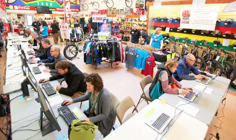Locals register Friday at Mountain Bike Specialists for the 2015 Iron Horse Bicycle Classic. As of 5:30 p.m., 450 entrants had signed up – 300 for the citizens tour and 150 for the race, said IHBC director Gaige Sippy. Registration will open online at 9 a.m. Saturday at www.ironhorsebicycleclassic.com.