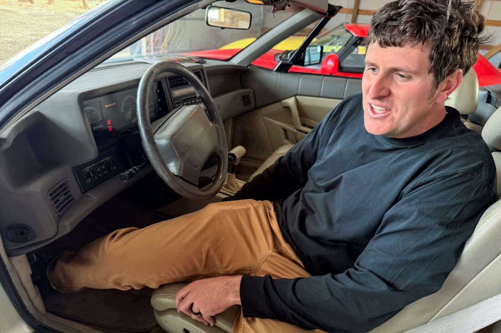 Tommy Mica of TFL Car sits inside a 1989 Cadillac Allante convertible. He says he bought it for under $2,000. (Nathan Fernando-Fescas/CPR News)
