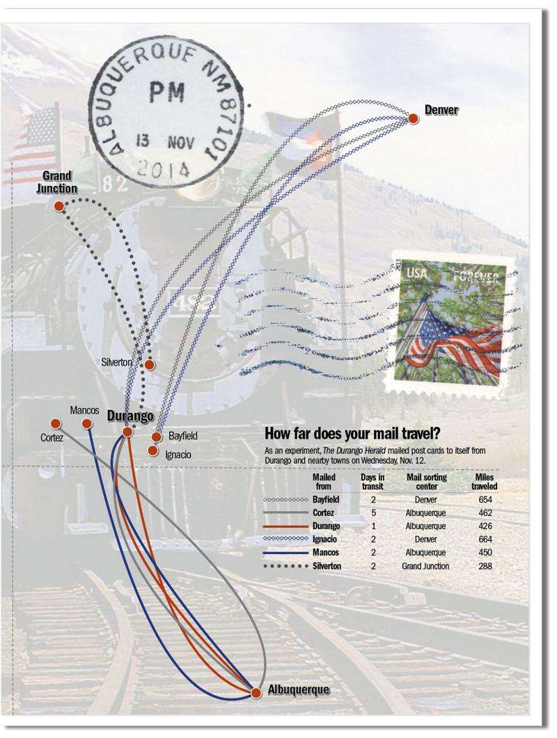 It may seem illogical that mail sent from south La Plata County venues such as Ignacio, Tiffany and Arboles goes north to Denver for sorting, while mail from north Montezuma County communities such as Dolores and Dove Creek goes south to Albuquerque.