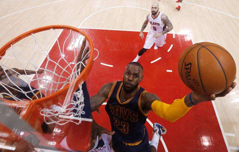LeBron James scored 31 points and J.R. Smith made eight 3-pointers and added 28, leading the Cleveland Cavaliers past the top-seeded Atlanta Hawks 97-89 in Game 1 of the Eastern Conference finals Wednesday night.