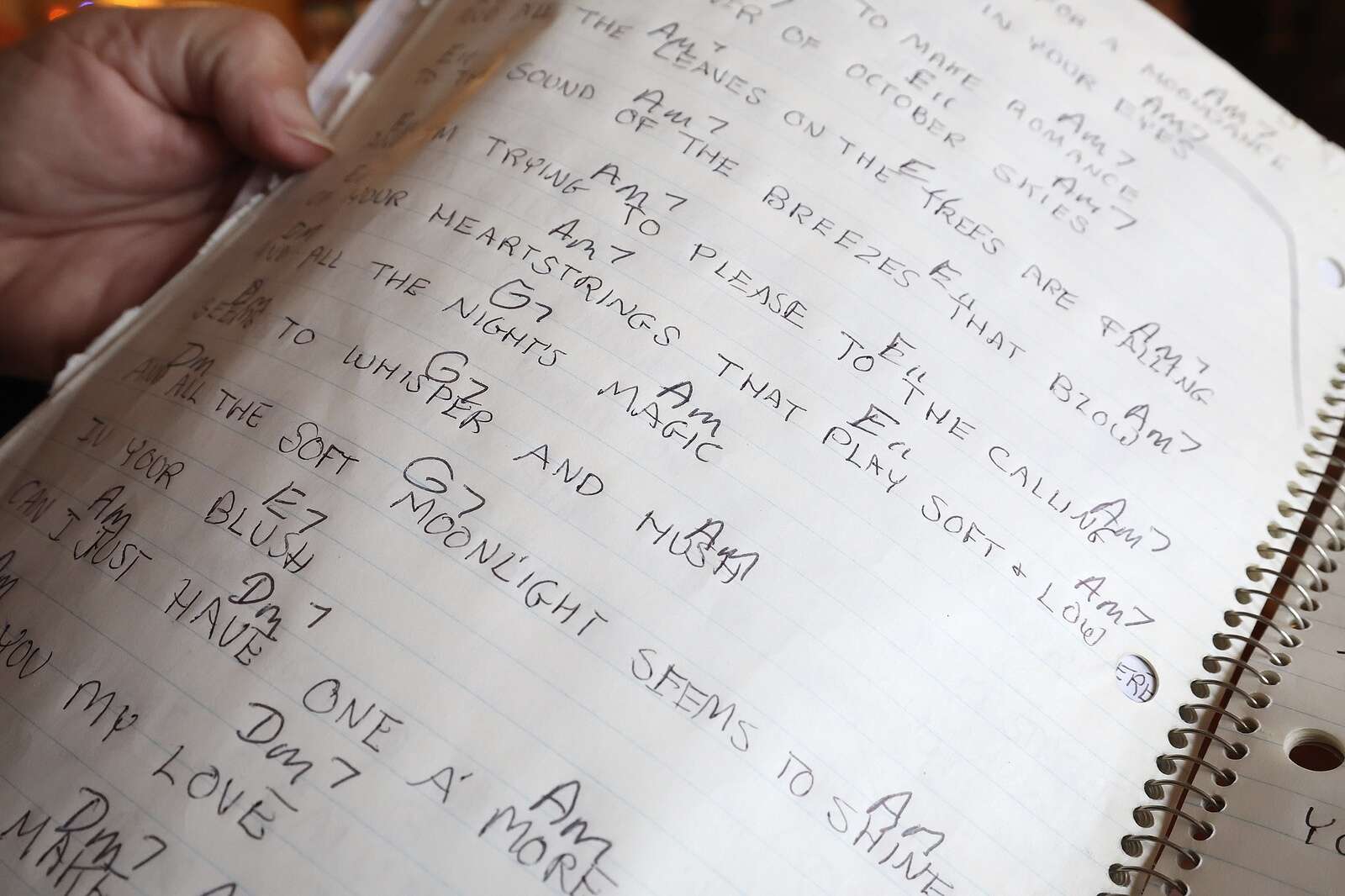 He said he has begun recording his guitar sessions to preserve his music and to remind himself how to play. Not trusting his memory, he has a notebook full of lyrics and tablatures he reads as he plays. Meme finds the songs online and handwrites them into his notebook.