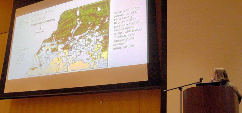 "I haven't been to a La Plata County Planning Commission meeting in 10 years," she said. "I haven't always voted. I haven't attended every opportunity I had. If you think your neighbor will take care of it, think again. We have to stay involved. If we don't, you can kiss your property rights goodbye."