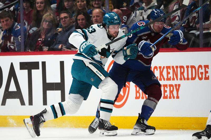 DENVER (AP) — Josh Manson scored the tiebreaking goal in the third period and the NHL-leading Colorado Avalanche beat the San Jose Sharks 4-2 in their final game before the Olympic break Wednesday night.