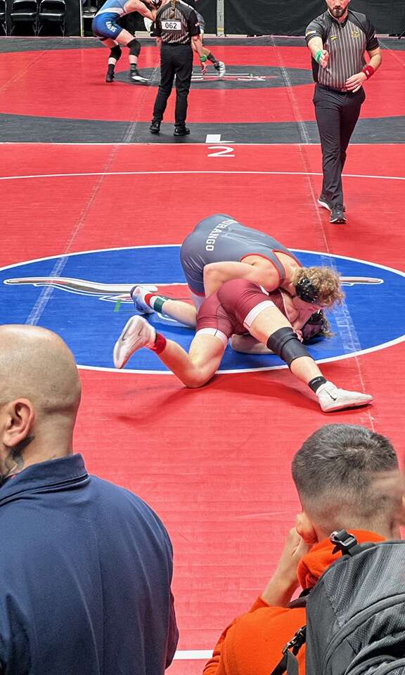 Belt pinned his first consolation bracket opponent, then beat Jayce England from Montrose, 8-5, after losing to him in the regular season. Belt beat Braeden Sandoval from Pueblo Central, 4-2, to advance to the consolation semifinals on Saturday.