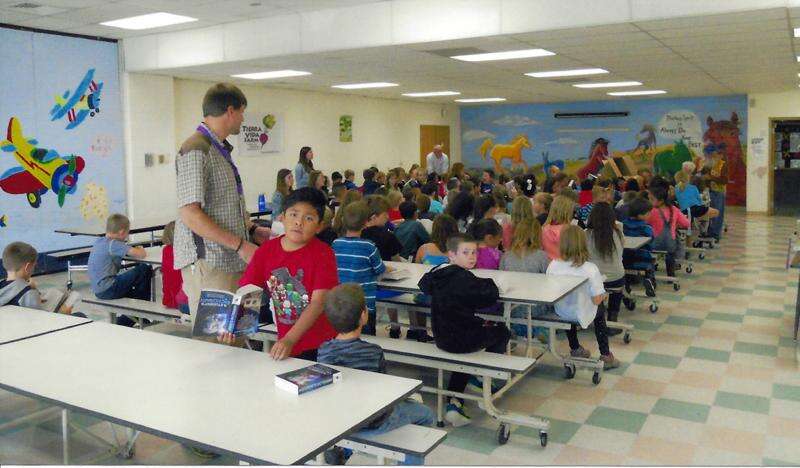 Bayfield Lions Club members George Knoll, Joyce Knoll, Ron Dunavant and Dennis Baxter handed out dictionaries to Bayfield Elementary School third graders this month. The annual event is part the club's 'Words for Third' program. The club will host a blood drive from 10:30 a.m. to 2 p.m. on Wednesday, Dec. 7 at the Lions Club Hall. To make an appointment for a donation, call 884-2054.