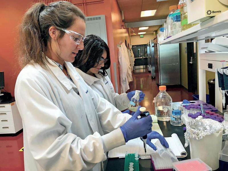 In her work at the lab, Barry is being assisted by three LANL student researchers: Anna Finck of Las Vegas, New Mexico; and Jenna Schambach and Sara Lamcaj, both from New Jersey. They were busy last week as they examined algae cultures and counted algae cells to monitor growth.
