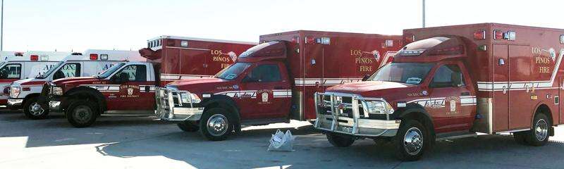 The ambulances left Wednesday for California and so far haven't been on any calls there, although they had prepared to help evacuate 4,000 patients from a Veterans Administration facility there, said Los Pinos Deputy Chief Kevin Ratzmann. The building was protected by firefighters, however, and was spared.