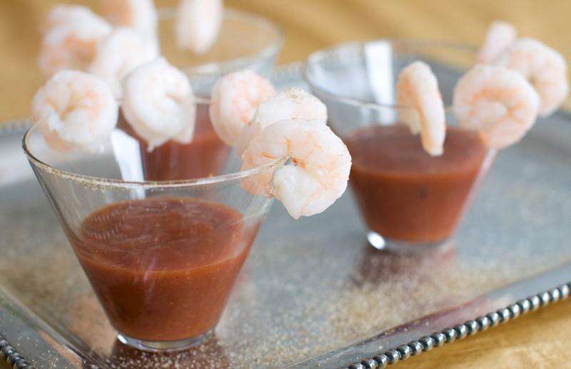 Keep the peeled shrimp dry and cold in the refrigerator, then serve with homemade cocktail sauce. The bloody mary cocktail sauce here is one of my favorites. The addition of vodka adds a spike of flavor and the rim of celery salt is both pretty and reminiscent of that classic cocktail.