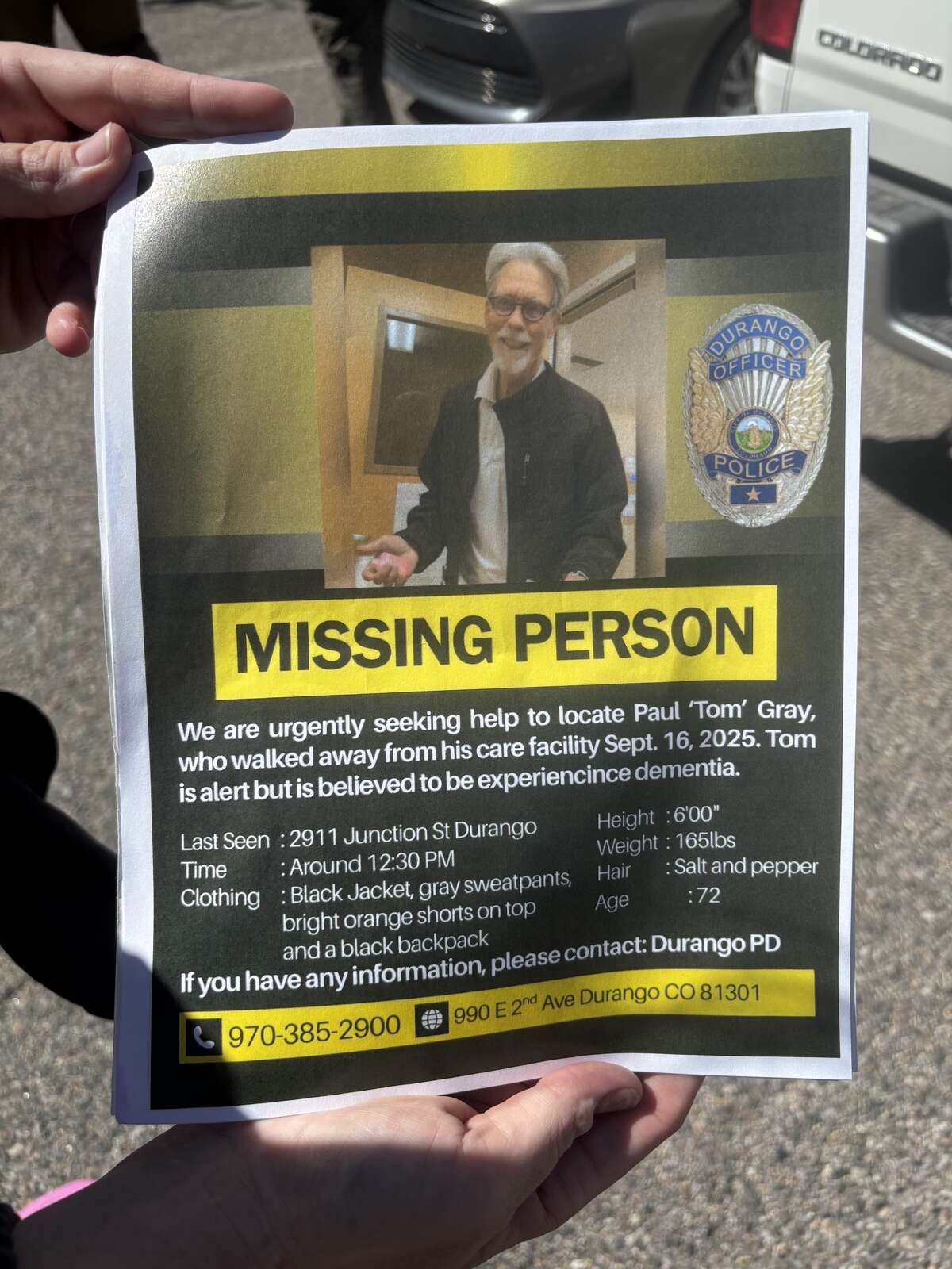 The initial search did not prove fruitful, Dunlop said, so the department began coordinating with the community and La Plata County Search and Rescue to organize a larger search. La Plata County activated Code Red alerts to send out Gray’s description.
