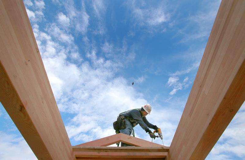 Curtis Hatch of Weeminuche Construction drills holes in beams being used as a covered walkway between Manna Soup Kitchen and Manna’s new expansion. The expansion will include administrative and community meeting spaces as well as a teaching kitchen for a culinary arts training program scheduled to begin next fall.