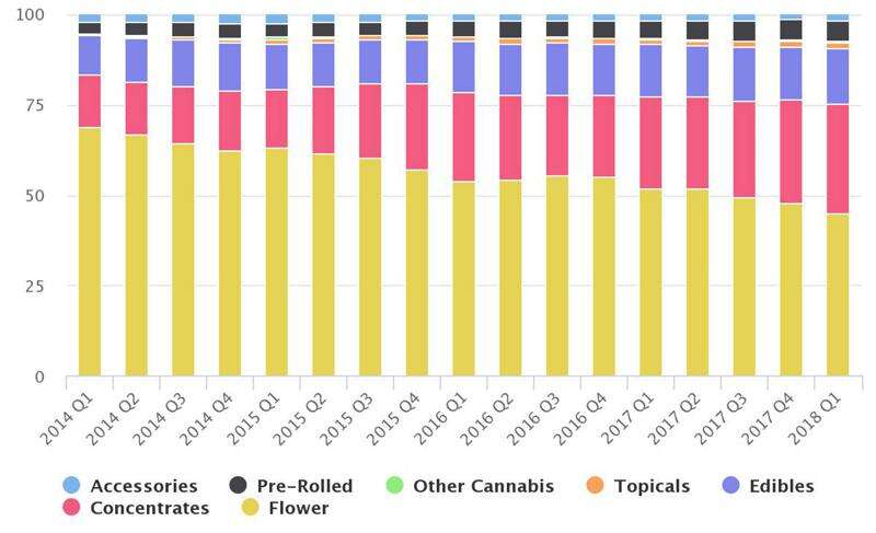 Sales for concentrates and edibles have sharply risen in the last couple years. In 2017, sales for recreational edibles increased by almost 30 percent. While 477 percent more recreational concentrates were sold than medical concentrates in that same time.