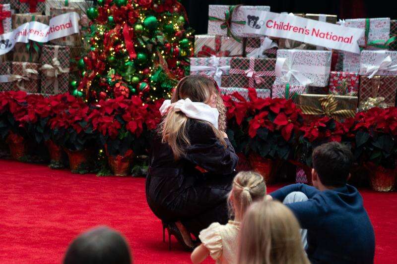 Two patients — an 11-year-old boy and a 5-year-old girl — escorted her into the festively decorated atrium at Children's National hospital in the nation's capital. Trump sat in a big red chair in front of a tall Christmas tree and read, “How Does Santa Go Down the Chimney?” by Mac Barnett, for about two dozen child patients and others in the audience.