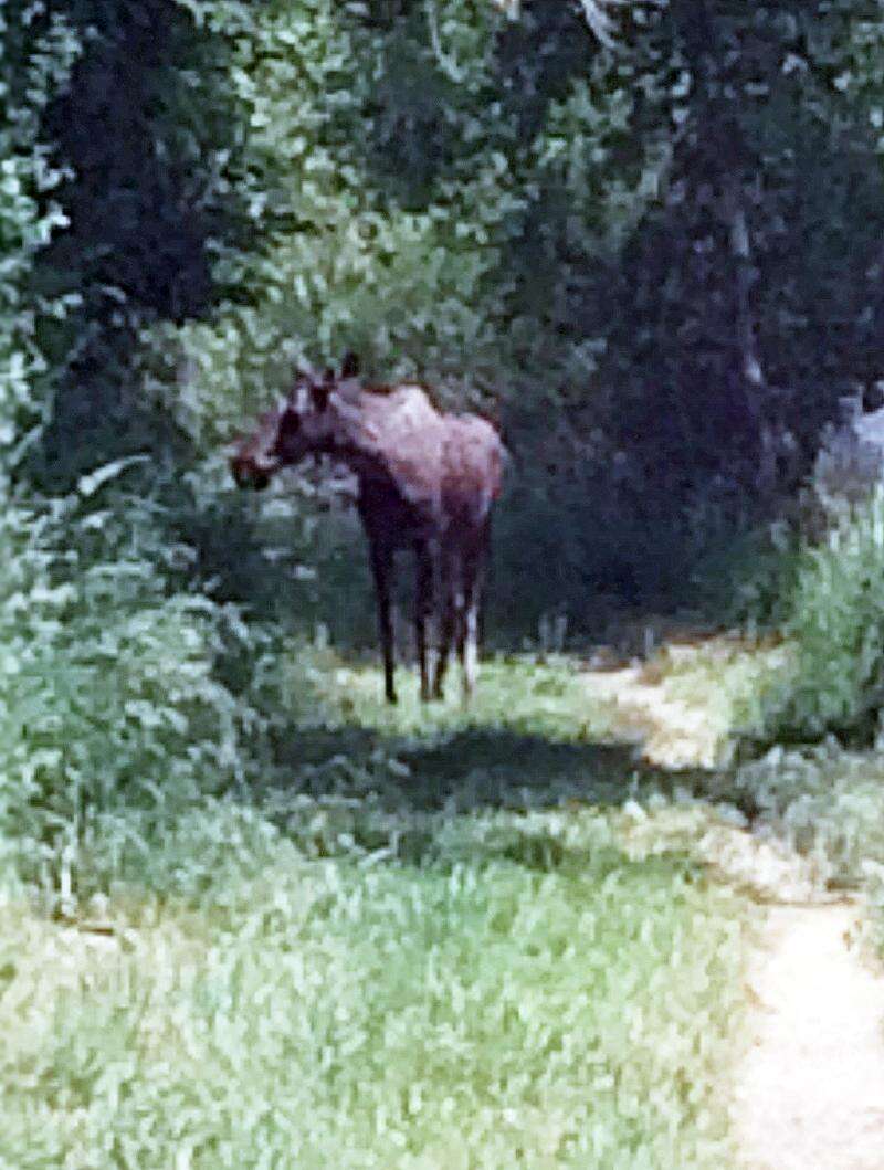 Laurie Robison used her smart phone to photograph this moose the morning of June 13 on the walking path between North Street and Bayfield's Highway 160 park. "It was closer to North Street," she said. "A friend and I were walking and just headed out on the trail. We saw this animal. I thought it was a horse, but I looked again and said, 'Oh! It's a moose!'" <br><br>She guessed that the animal was a yearling.