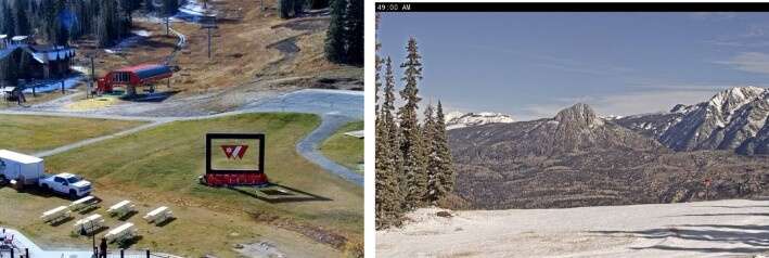 Webcams showed Purgatory Resort with trace amounts of snow near the base area and a thin layer near the top of the mountain.