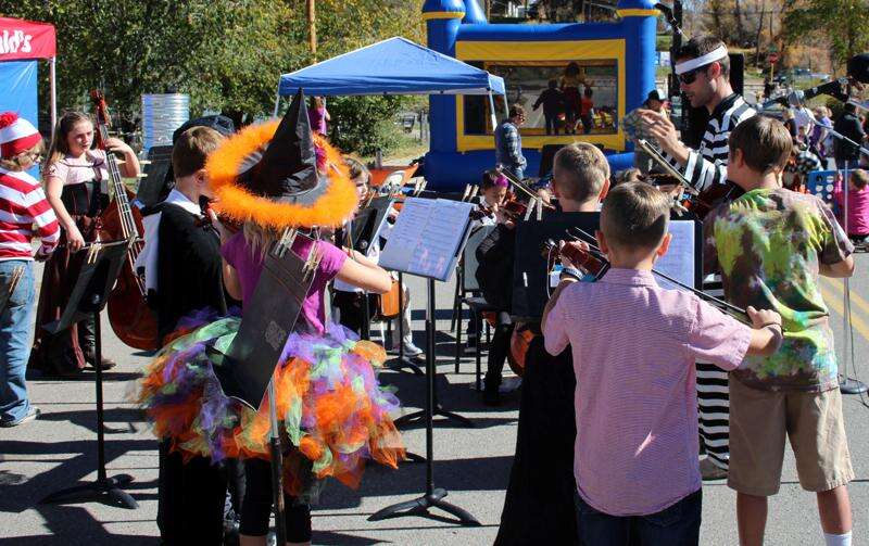 The Be Frank Elementary Orchestra performs Saturday at Frank 'N Stein, an annual fundraiser for the Be Frank Foundation. Bottom Shelf Brewery helped host the event on Mill Street, which included a pumpkin drop finale.