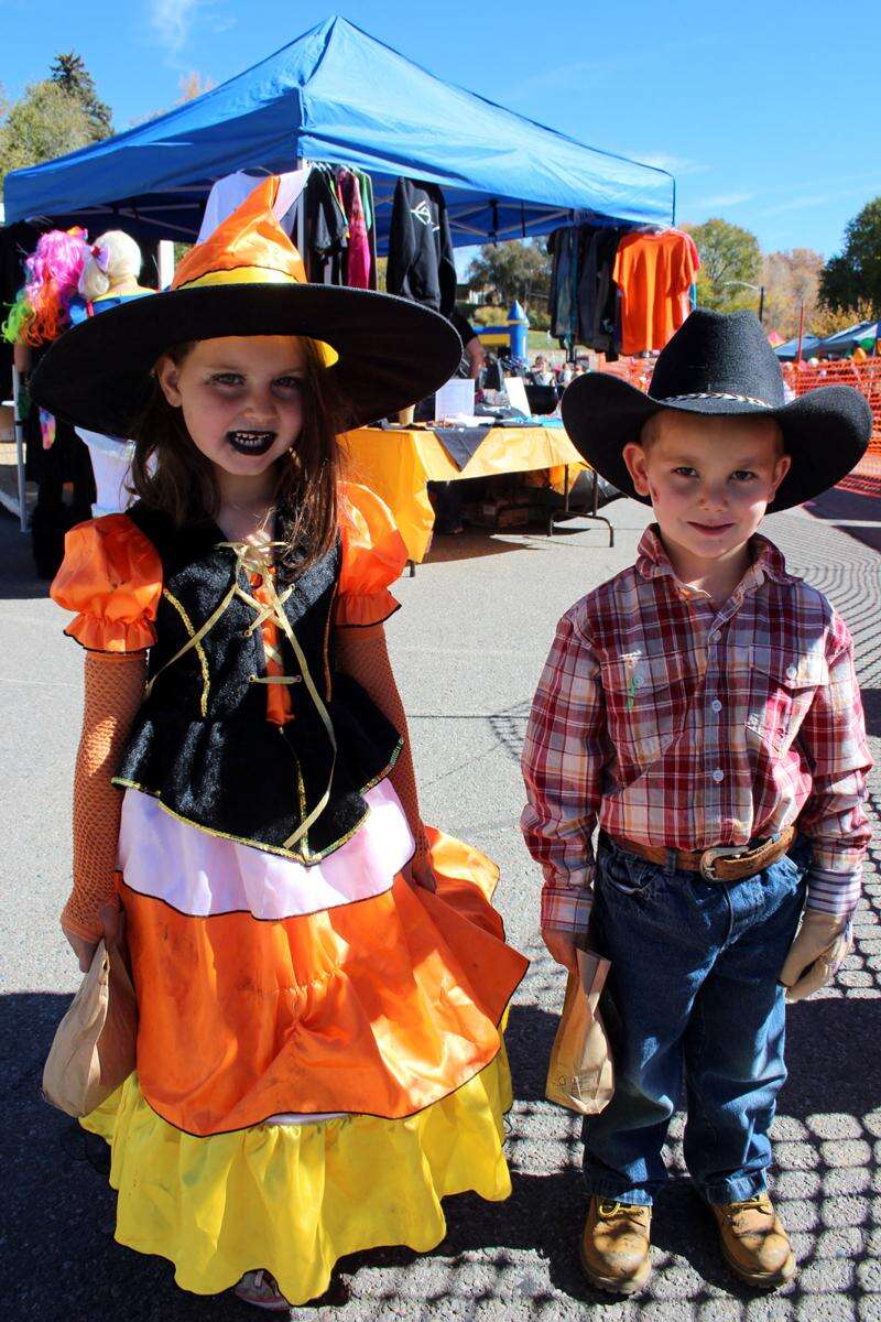 Kylie Yates, as a candy corn witch, and brother Ely, a dead rodeo rider, enjoy the activities at Frank 'N Stein Saturday in downtown Bayfield. The event is an annual fundraiser for the Be Frank Foundation.