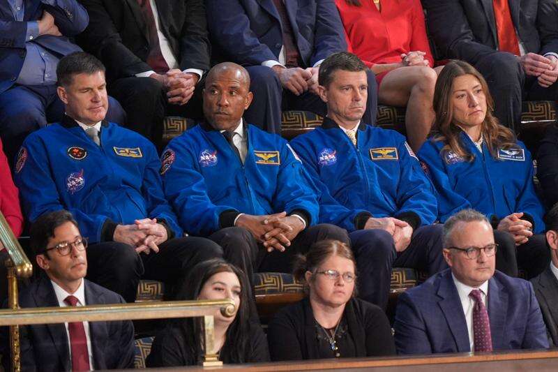 All four astronauts were at the U.S. Capitol on Tuesday night for President Donald Trump's State of the Union address as invited guests, since the flight delay means they no longer need to quarantine.