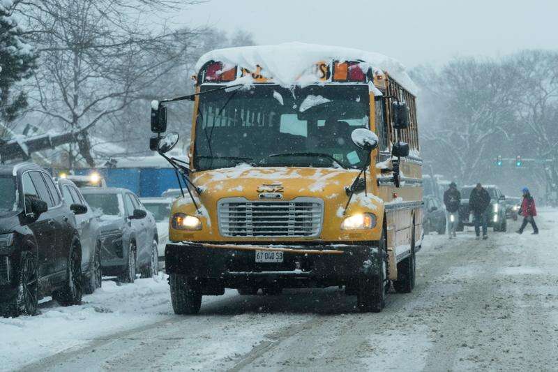 Deep snow — over a foot (30 centimeters) extending in a 1,300-mile (2,100-kilometer) swath from Arkansas to New England — halted traffic, canceled flights and triggered wide school cancellations Monday. Up to two feet (60 centimeters) were forecast in some of the harder-hit places.