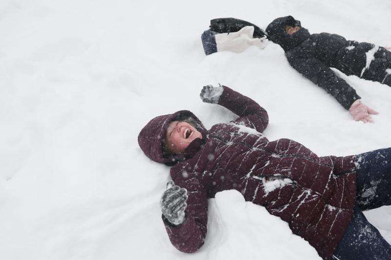 Nell Fields said she had to shovel just to be able to let her dog outside Sunday. Seven inches (18 centimeters) had fallen, with up to that much more still on the way.