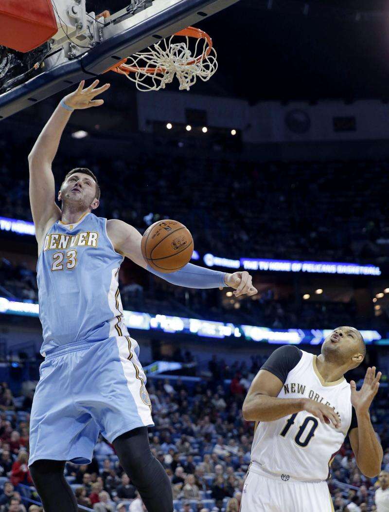 Jusuf Nurkic scored 15 for Denver, while Kenneth Faried had 14, highlighted by his soaring dunk over Anthony Davis and Dante Cunningham.