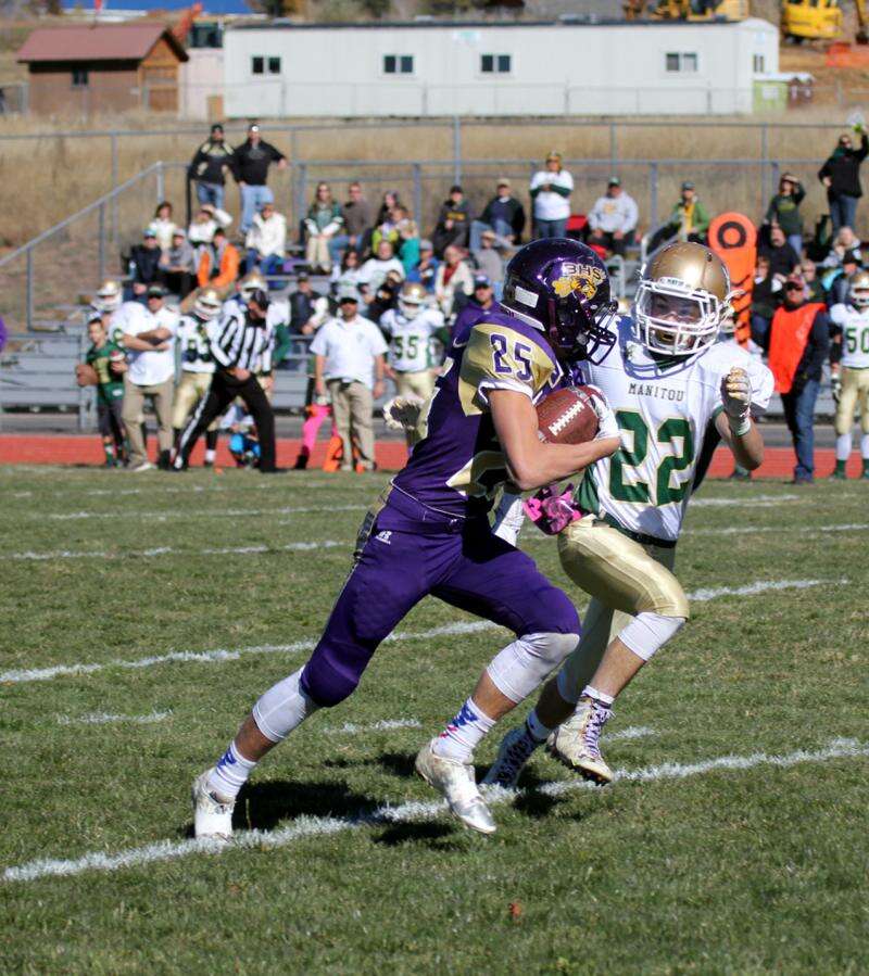 The defensive line of Noah Loutherback, Hunter Killough, Phelps, Cash Snooks, Cole Wood and Clyde Leonard made sure those turnovers happened fairly quickly and limited Manitou Springs to a handful of first downs for the entire game. Wood led the defense with nine tackles, followed by Jesse Westbrook with seven and one fumble recovery. Hawkins also had six tackles.