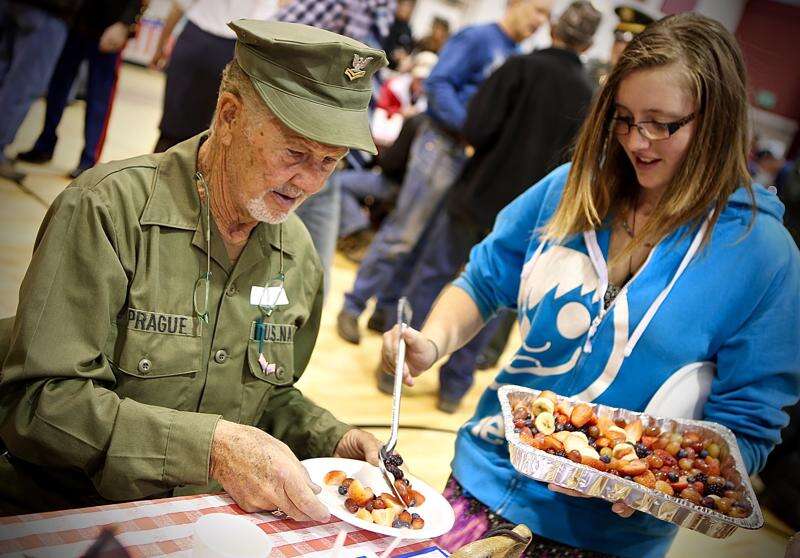 Eighth-grade students cooked and served breakfast to local veterans Wednesday at Pagosa Springs Middle School. This year marks the 15th year for the event. Students, including Jessica Sullivan, who served fruit salad, listened to stories from veterans from all branches of the military and had a chance to ask questions.