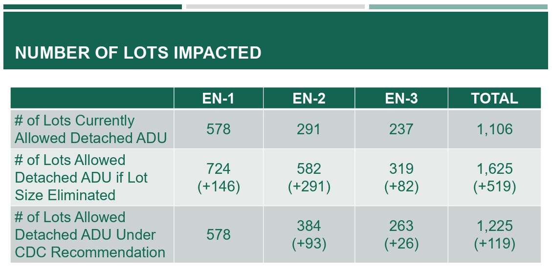 This editorial has been updated to reflect the correct total number of eligible ADUs if lot sizes are eliminated as 1,625, not 2,144, a nearly 50% increase in eligible lots, not 100%.