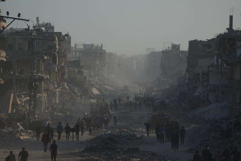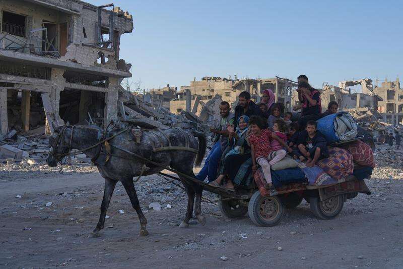 GAZA CITY, Gaza Strip (AP) — Tens of thousands of displaced Palestinians returned to their Gaza neighborhoods Saturday, weaving through dust-shrouded streets as bulldozers clawed through the wreckage of two years of war and a ceasefire held in its second day.