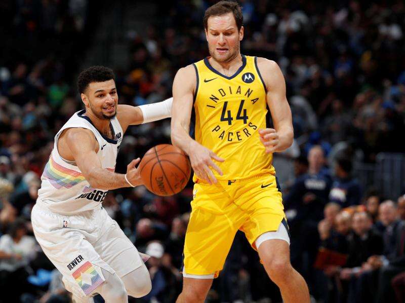 DENVER — Paul Millsap hit a left-handed layup with 7 seconds remaining, Nikola Jokic scored 26 points before being ejected in the fourth quarter for arguing and the Denver Nuggets moved to the verge of their first playoff spot since 2012-13 with a 102-100 victory over the Indiana Pacers on Saturday night.